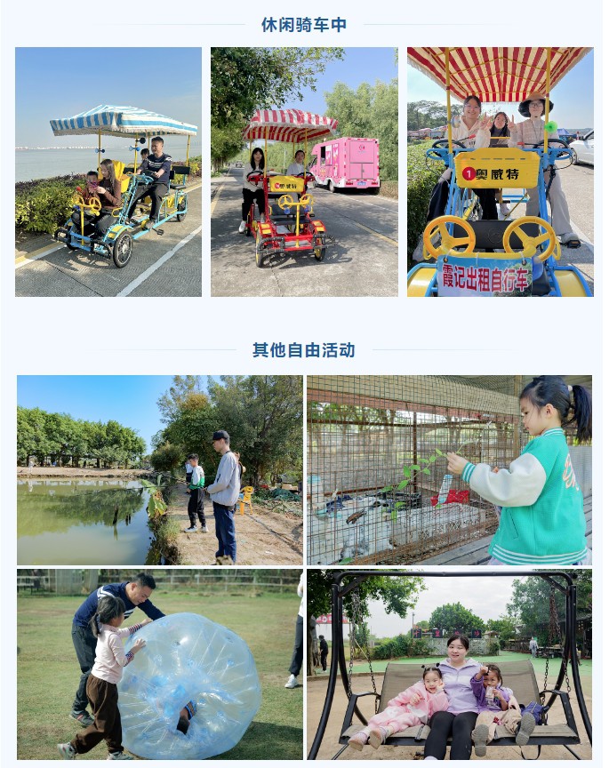 下午,大家在農(nóng)場(chǎng)內(nèi)自由活動(dòng)。體驗(yàn)卡丁車(chē)、釣魚(yú)、騎車(chē)游海鷗島、捕魚(yú)、打野戰(zhàn)等豐富多彩的活動(dòng),享受大自然的恩賜,度過(guò)一段愉快的時(shí)光。