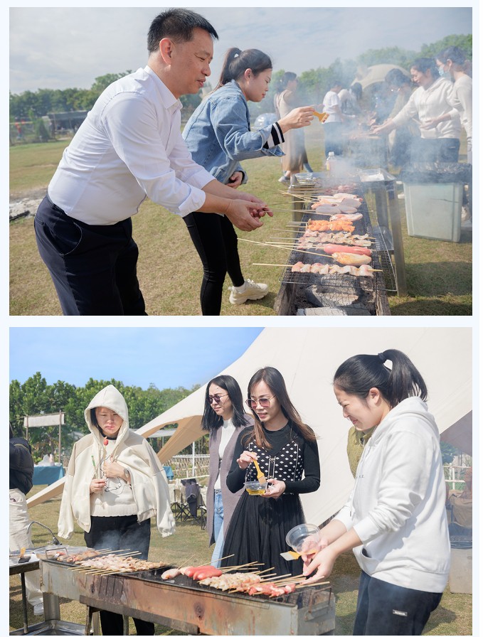 中午,我們?cè)谵r(nóng)場(chǎng)內(nèi)自制燒烤美食、圍爐煮茶等,品嘗美味,共享美好時(shí)光。同事們相互交流,拉近彼此的距離。
